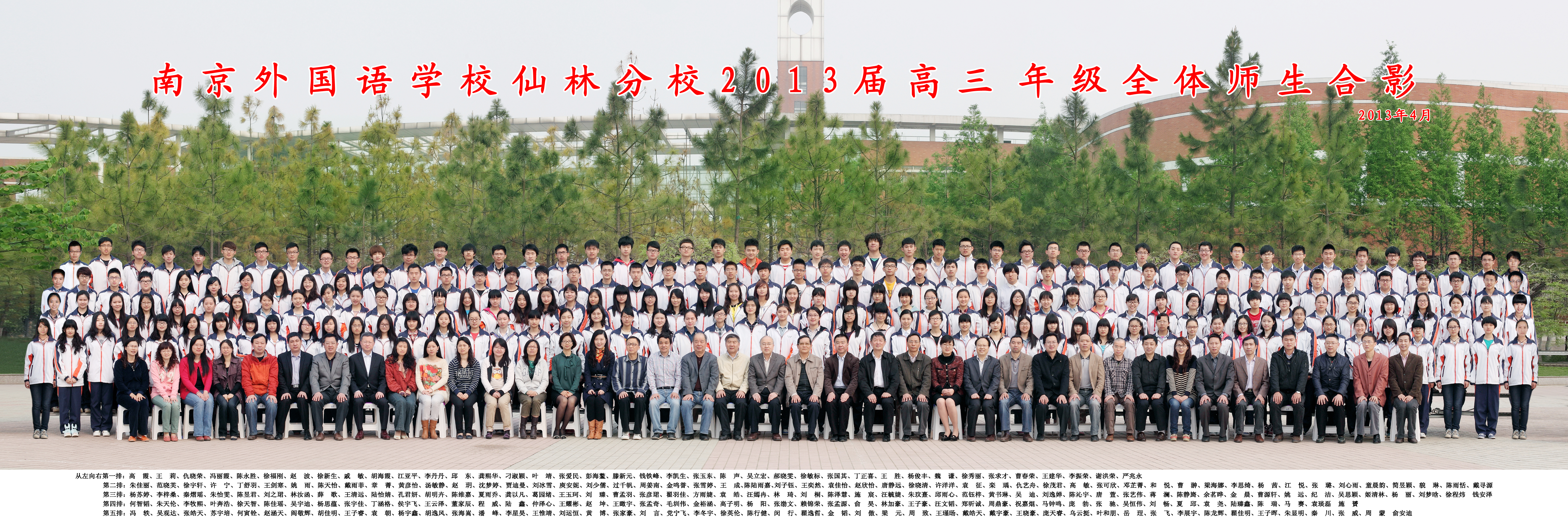 2013届高三年级在学校各级领导的关心与指导下,在年级全体师生的共同努力下,始终坚持“以人为本”的教育原则,面向全体学生,实施素质教育,围绕学校“三项中心”工作,扎实而有效地开展了各种教育教学及管理工作,科学指导学生进行个人规划,在保送、留学、高考三个方面都取得了骄人的成绩,创造了建校10年的新辉煌。 本届高三共有在籍生186人,其中保送国内名校 27人,留学国外名校75人。参加国内高考的同学84人,二本上线72人。高考二本上线率85.7%,综合二本升学率93.5%,选修匹配率达100%。 感谢各级领导、社会各界以及全体高三家长对我们工作的关心和支持,感谢全校教职工对高三师生的鼓励和帮助! 2013届高三教育团队成员名单: 年级主任:徐敏标 年级组长:丁正喜 年级领导小组成员:徐敏标 丁正喜 魏谦 邱东 谢洪荣 王莉 班级教育小组组长:严兆永 徐福刚 王胜 王莉 魏谦 陈永生 语文:赵波 王莉 王胜 数学:严兆永 叶靖 谢洪荣 徐敏标 英语:邱东 李丹丹 杨俊丰 戚敏 江亚平 仇晓荣 物理:魏谦 徐新生 化学:陈永生 生物:冯丽霞胡海霞 政治:李峥嵘 历史:丁正喜 曹春荣 地理:徐福刚 体育:王建华 高霞 高校录取 沈梦婷 安徽农业大学 周 蒙 北京理工大学 王子豪 常州大学 许洋洋 常州大学 刘 畅 成都信息工程学院 马 赛 东南大学 张 威 东南大学成贤学院 马钟鸣 东南大学成贤学院 庞 勃 东南大学成贤学院 贾迪曼 东南大学成贤学院 胡逸风 东南大学成贤学院 高 敏 东南大学成贤学院 潘 峰 东南大学成贤学院 朱显明 东南大学医学院 陈 瑞 哈尔滨工程大学 庞天睿 哈尔滨工业大学 袁佳怡 河海大学 龚以凡 湖北美术学院 吴恒伟 湖南大学 李星昊 华东交通大学 简昱颖 华南理工大学 童晨韵 华侨大学 汤敏静 江苏第二师范学院 林加豪 江苏科技大学 袁 尧 江苏科技大学(张家港校区) 刘少儒 江苏理工学院 陆 鑫 金陵科技学院 王瞰宇 南京财经大学 金鸣誉 南京财经大学 黄 博 南京财经大学红山学院 江 悦 南京大学 陆臻鑫 南京大学金陵学院 张可欣 南京大学金陵学院 王玉珂 南京大学金陵学院 金 晨 南京大学金陵学院 阎敬辉 南京大学金陵学院 梁海娜 南京大学金陵学院 毛圳伟 南京工程学院 陈龙辉 南京工业大学 刘运恒 南京理工大学 吴 迪 南京理工大学紫金学院 瞿佳明 南京林业大学 徐晓清 南京林业大学 庾安妮 南京林业大学 王耀彬 南京林业大学南方学院 秦 川 南京农业大学 汪文韬 南京农业大学 张艺伟 南京农业大学 钱经纬 南京森林警察学院 袁 朝 南京审计学院 林 琦 南京审计学院 姬清林 南京审计学院 余茗晔 南京审计学院 岳 珵 南京师范大学 汪嫣冉 南京师范大学 黄书琳 南京师范大学 俞 昊 南京师范大学泰州学院 梁 元 南京师范大学泰州学院 章 菁 南京师范大学中北学院 刘 言 南京师范大学中北学院 张孟奇 南京体育学院 祝嘉焜 南京信息工程大学滨江学院 乌云挺 南京医科大学 张 璐 南京医科大学 吴观达 南京医科大学康达学院 金裕涵 南京艺术学院 曹源轩 南京艺术学院 刘 傲 南京邮电大学 范钰梓 南京邮电大学 王 成 南京邮电大学通达学院 王云泽 南京邮电大学通达学院 袁 征 南京邮电大学通达学院 张孟源 南京中医药大学 陈维嘉 南京中医药大学 纪 洁 南京中医药大学 程 威 青海师范大学 党宁飞 琼州学院 唐静远 厦门大学 刘梦晗 山东大学威海分校 夏 邱 上海对外经贸大学 刘心雨 首都医科大学 杨 丽 四川大学 张 飞 苏州大学 王子晖 苏州工业园区职业技术学院 陈天怡 台湾地区高校 葛园绪 扬州大学 李展宇 长沙理工大学 陈泽慧 浙江传媒学院 朱佳丽 浙江商业职业技术学院 刘冰雪 中国传媒大学 保送录取 赵涵天 北京科技大学 刘 桐 北京外国语大学 唐 萱 北京外国语大学 方雨婕 广东外语外贸大学 邓芷菁 广东外语外贸大学 张皓天 广东外语外贸大学 姚 雨 广东外语外贸大学 张海嵩 广东外语外贸大学 李思绮 广东外语外贸大学 曹孟羽 广东外语外贸大学 朱玟熹 河海大学 王瑾旸 南京大学 袁 皓 南京航空航天大学 陈雨恬 南京航空航天大学 夏雨乔 南京航空航天大学 邱雨心 南京理工大学 姚 远 南京理工大学 张彦珺 南京农业大学 王剑寒 南京邮电大学 曹 翀 上海外国语大学 陈沁宇 苏州大学 徐程炜 苏州大学 吴思颖 武汉大学 许 宁 扬州大学 施 宸 扬州大学 陈静旖 中山大学 朱怡雯 重庆大学 出国留学 刘达成 澳大利亚 墨尔本大学 陶 然 澳大利亚 新南威尔士大学 朱芷仪 澳大利亚 新南威尔士预录 杨晓慧 德国 克洛斯特女子高级文理中学 黄彦怡 法国 巴黎高等对外贸易学院 张渤文 加拿大 阿尔伯特大学 杨苏亭 加拿大 多伦多大学 朱天伦 加拿大 多伦多大学 钱安泽 加拿大 多伦多大学 胡明卉 加拿大 肯考迪亚大学 张家豪 加拿大 肯考迪亚大学 吴宇迪 加拿大 劳里埃大学 刘之珺 加拿大 麦吉尔大学 赖锦荣 加拿大 麦吉尔大学 徐天智 美国 埃默里大学 孙文正 美国 埃默里大学 叶和朋 美国 爱荷华大学 陈陆雨嘉 美国 波士顿大学 秦熠瑶 美国 布兰代斯大学 陆怡婧 美国 布林茅尔学院 何唯一 美国 德雷克赛尔大学 陶政逸 美国 俄亥俄州立大学 杨明仁 美国 俄亥俄州立大学 王清远 美国 俄亥俄洲立大学 张雪婷 美国 范得堡大学 戴宇豪 美国 加州大学 李冬宇 美国 加州大学伯克立分校 过千帆 美国 加州大学