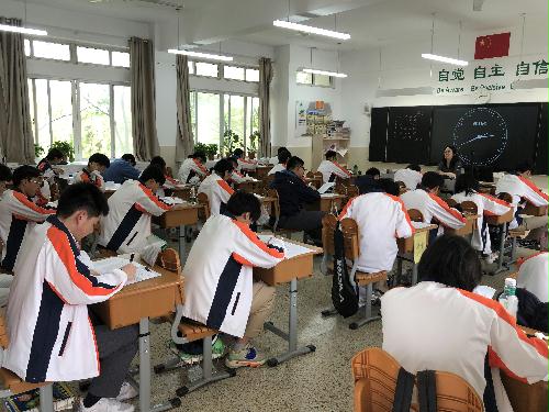 前期年级组对此次考试进行了周密的组织安排,考场布置、考试要求、考试间隔的教学活动组织、考试期间的核酸组织等都进行了布置。各班级也在教育小组老师的带领下,置好了考场。