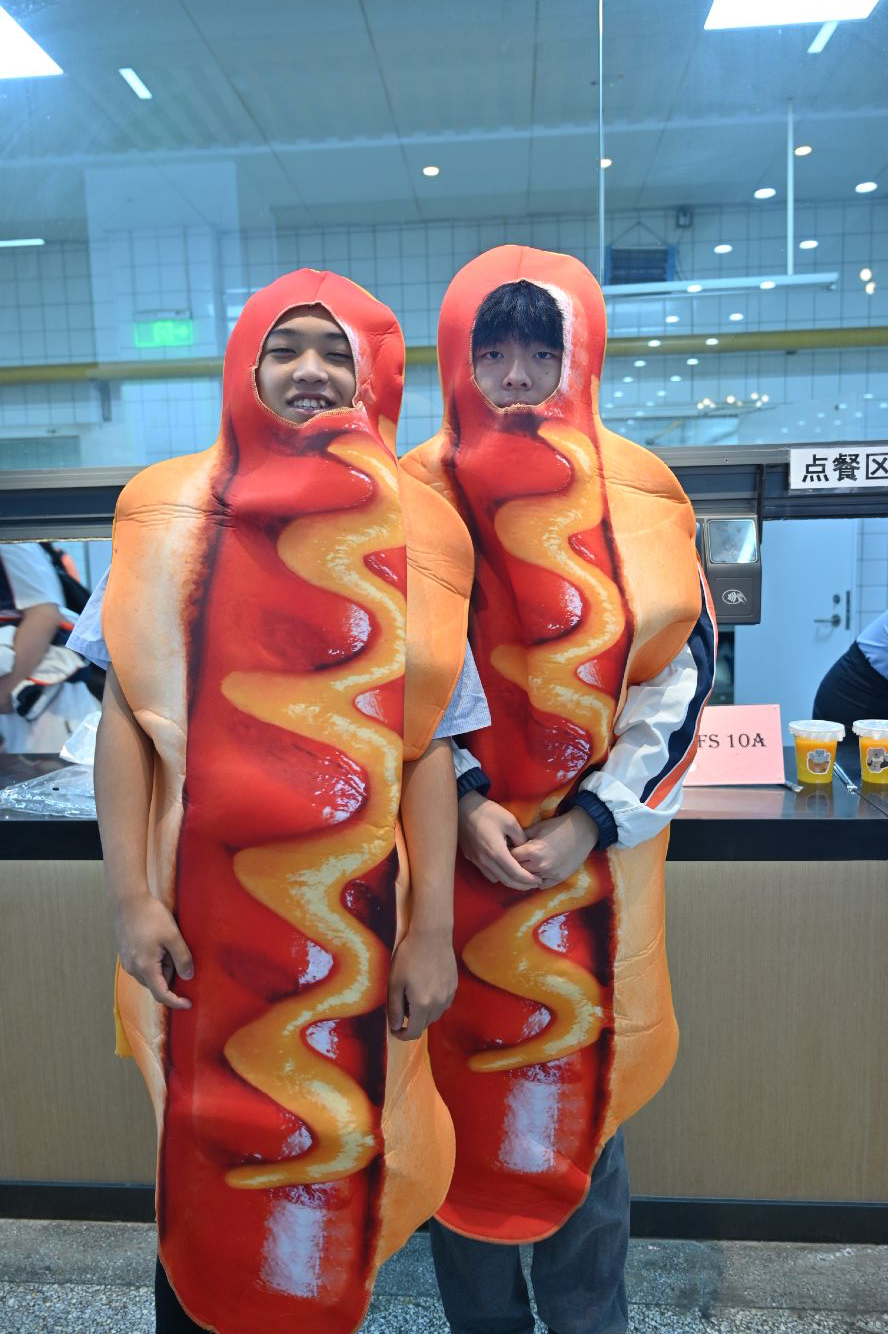 学生们穿着玩偶服套装招揽客人。汉堡头套,热狗,塔可,墨西哥人,玲娜贝尔与皮卡丘穿梭在人群中,形成了一道靓丽的风景线。