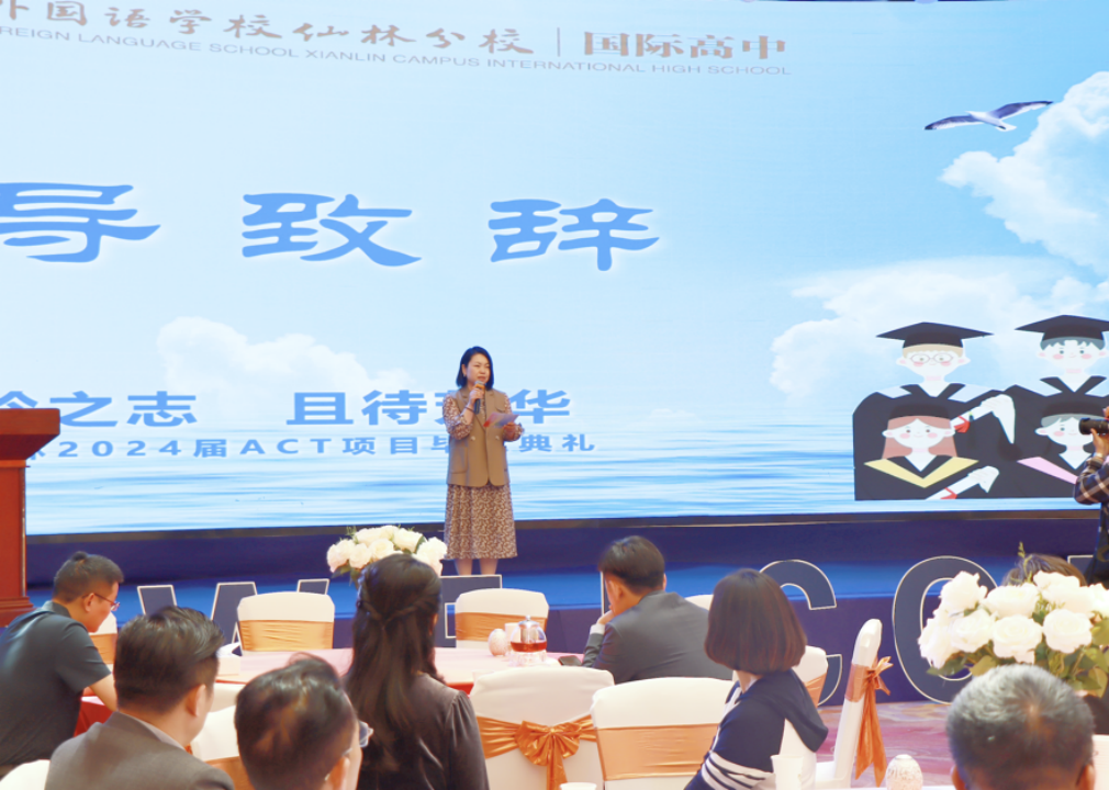 吴绪梓同学作为2024届ACT项目优秀毕业生代表发言。愿同学们心中充满爱与勇气,无畏前行,用自己坚持与努力书写未来的精彩华章,相信哪怕远赴海外,在南外仙林这三年的生活方式也将在我们心中打下深刻的烙印。