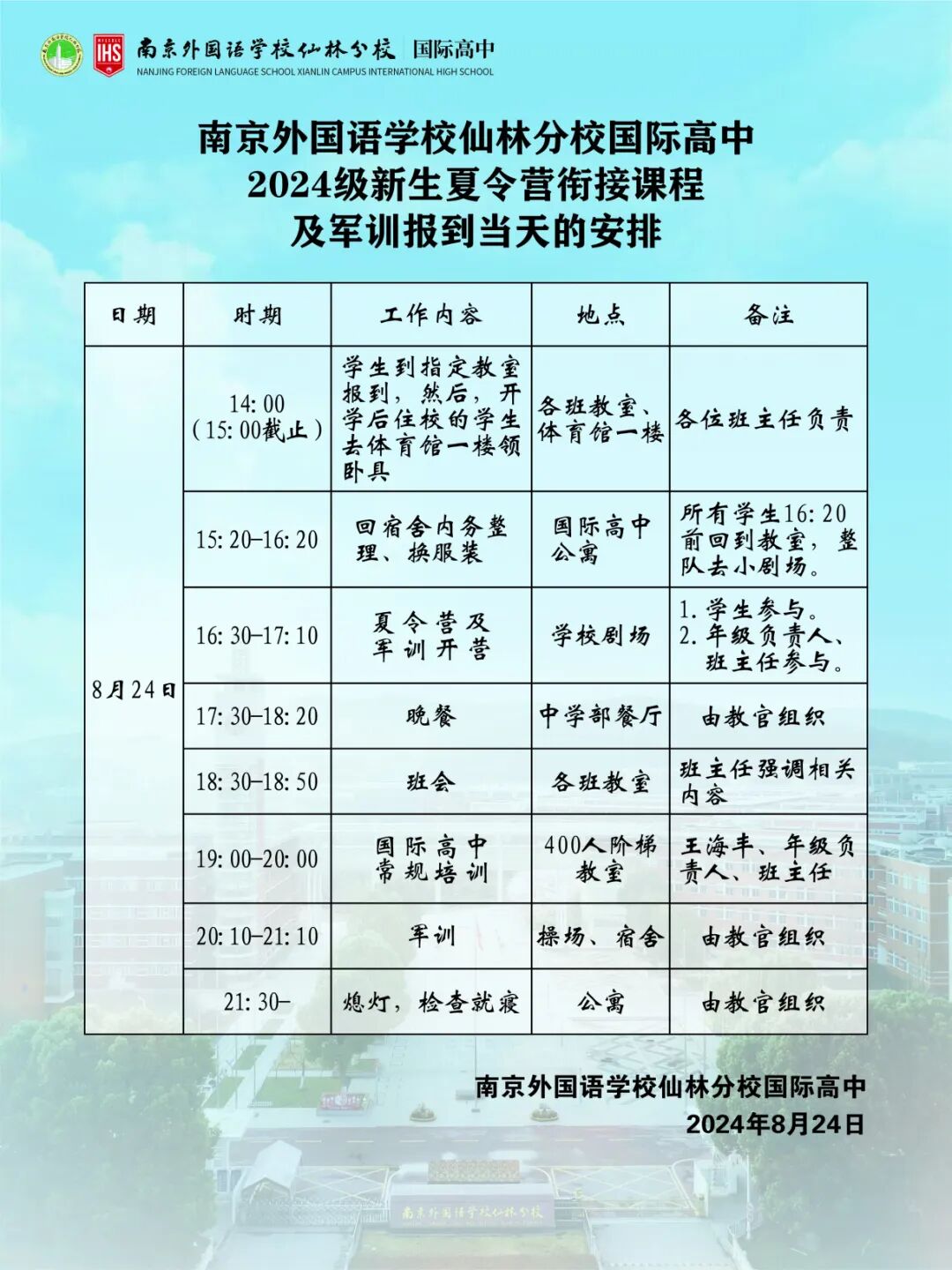 军训课程、国高常规管理、外教语言课程(英语、德语、日语)、英语阅读和写作、生涯规划培训与测评(KUDER职业测评/德国职业测评)、国高选修课程介绍、部分选修社团课程体验(国际数学竞赛、国际商业竞赛、音乐、体育、戏剧、播音与主持、幸福课程、瓶内沙画、马术)、英语测试、数学测试等。