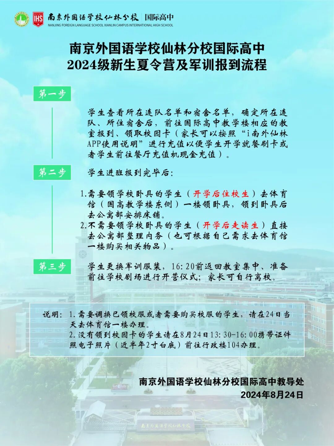 ① 开学后住校的学⽣:⼊营报到当天在体育馆⼀楼购买学校提供的⾏李包(夏被冬被各⼀床、枕头、床垫、床单被套枕套各两床、凉席、蚊帐、盆、⽑⼱、⽛杯)后可到公寓部办理⼊住⼿续。