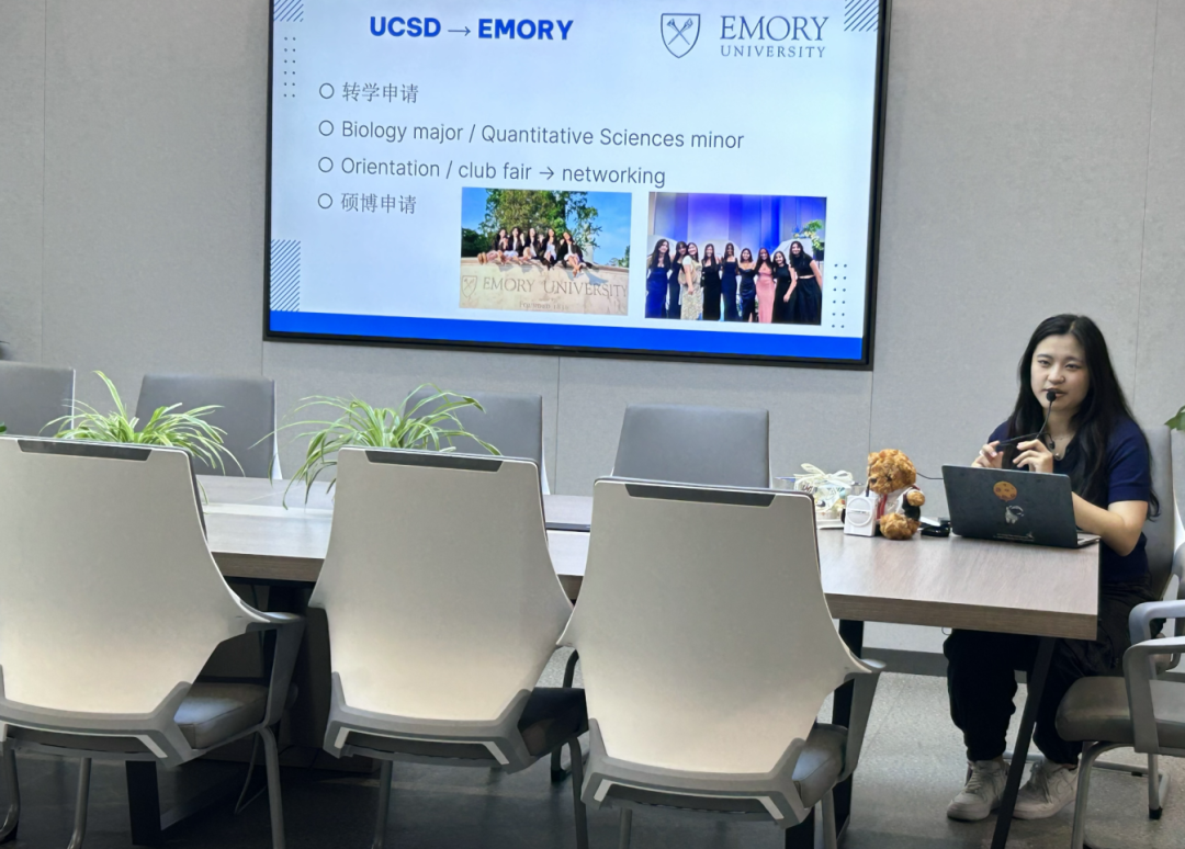5月31日,2017级中美项目的优秀毕业生徐淼迩学姐为同学们进行了经验分享。徐淼迩学姐本科就读于埃默里大学生物医学工程专业,即将直博哈佛大学免疫学专业。
