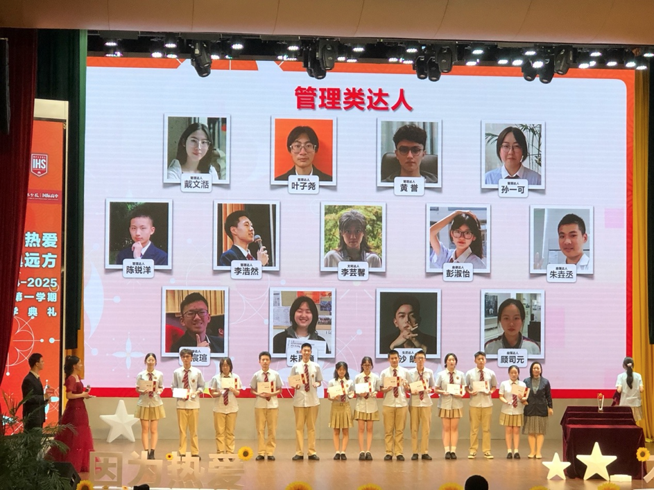 开学典礼上,国际高中揭晓了2024年南外仙林“国际高中年度人物”和“国际高中达人”评选结果,共计51人获得南外仙林国际高中各类达人的称号,1人获得国际高中2024年度人物的称号。脱颖而出的52位同学无疑是国际高中各自领域的佼佼者,他们用实际行动诠释了“全面发展”的真谛。他们或是孜孜不倦的探索者,用坚持和努力攻克追求卓越;或是舞台上光芒四射的表演者,用才艺和激情感染着每一个人;或是运动场上奋力拼搏的运动员,用汗水和毅力书写着青春的辉煌;亦或是热心公益的社会活动家,用实际行动传递着爱与温暖。