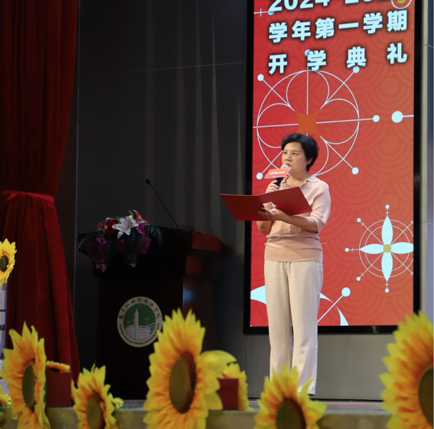 开学典礼上,国际高中程彩玲校长做了新学期致辞,她在致辞中祝贺五十二位获奖的优秀学子,祝贺他们在各项活动中脱颖而出成为国高人的榜样。