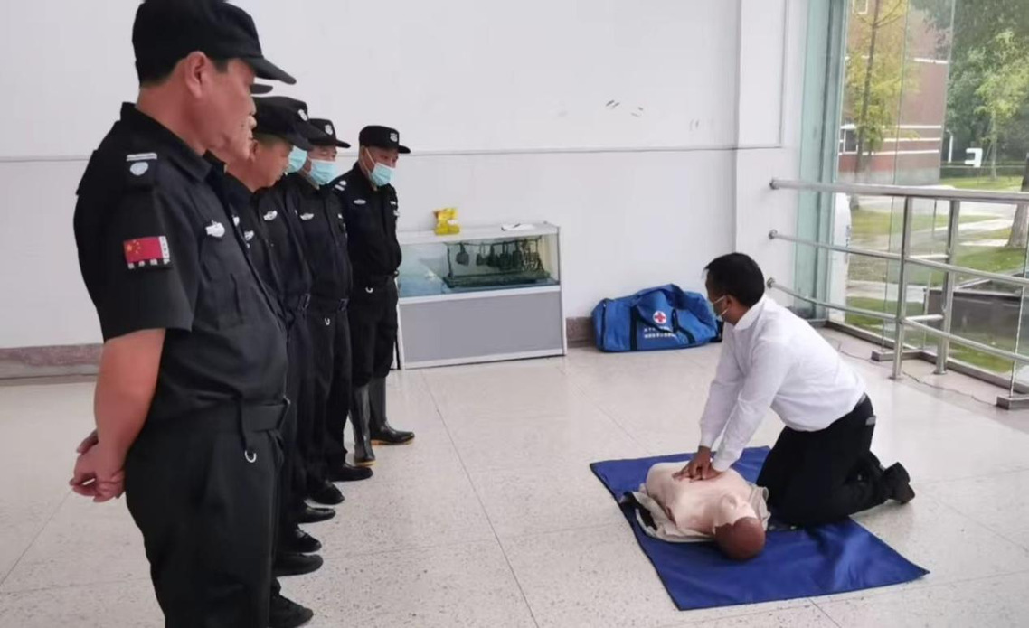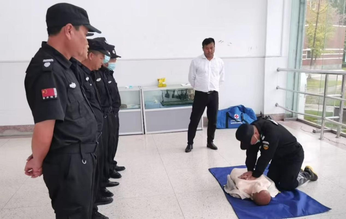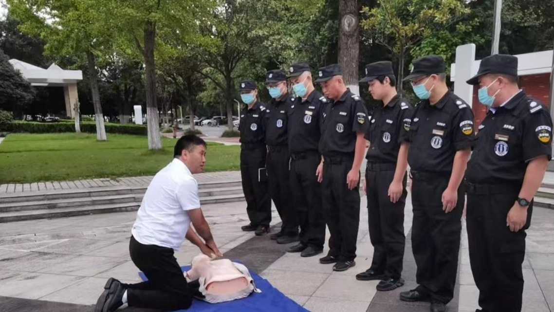 意外往往猝不及防,及时有效的急救能为生命赢得宝贵时间。校园安保团队将心肺复苏(CPR)培训纳入核心技能考核,通过栖霞区教育局安全科的培训,安保人员逐一实操练习:从判断意识、呼救流程,到胸外按压的力度与频率、人工呼吸的规范操作,每一个细节都严格要求、反复打磨。我们希望,在孩子突发意外需要急救的关键时刻,安保人员能凭借专业技能抢占 “黄金救援时间”,为孩子的生命安全保驾护航。