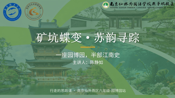 春光明媚,思政课“走”出了新意。3月19日下午,南京仙林外国语学校燕子矶校区小学部六年级迎来了一场别开生面的中小学思政一体化实践讲座。我校特邀南京晓庄学院陈静如同学,带领同学们进行了一场沉浸式的“园博园”云端导览,共同探寻百年矿坑蜕变为江南园林的生态奇迹。
